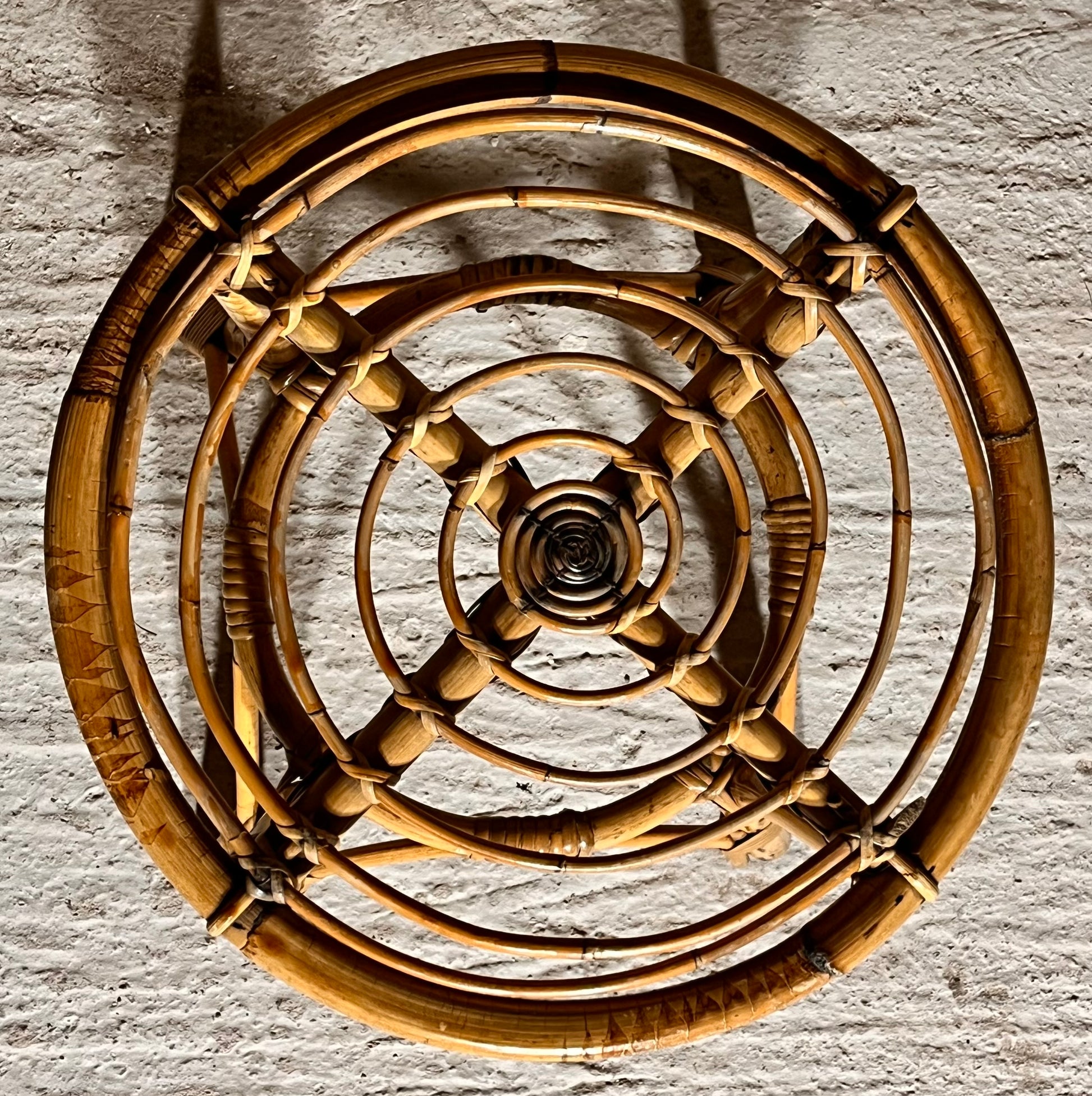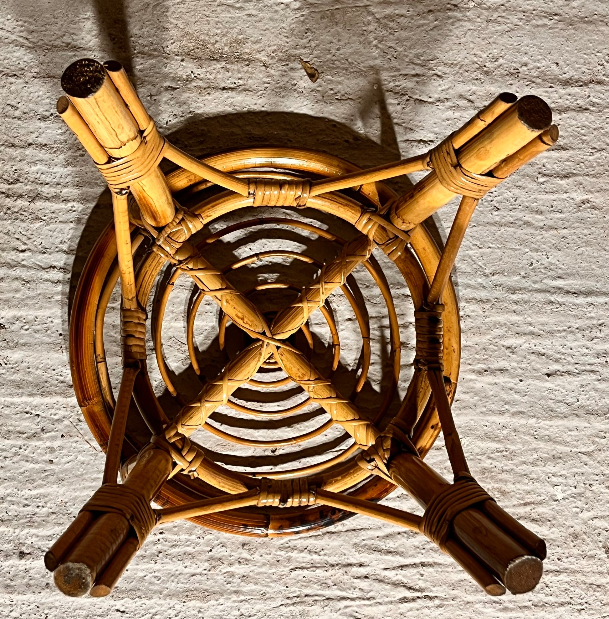 This lovely little rattan side table will add a touch of exotic vintage style while providing a practical surface for books, plants or small decorative items. It is a sturdy piece that could also be used a stool. This is a vintage item in very good condition but it may show traces of use/light wear consistent with age and use. Measurements (approximate): Height 38cm Diameter 37cm